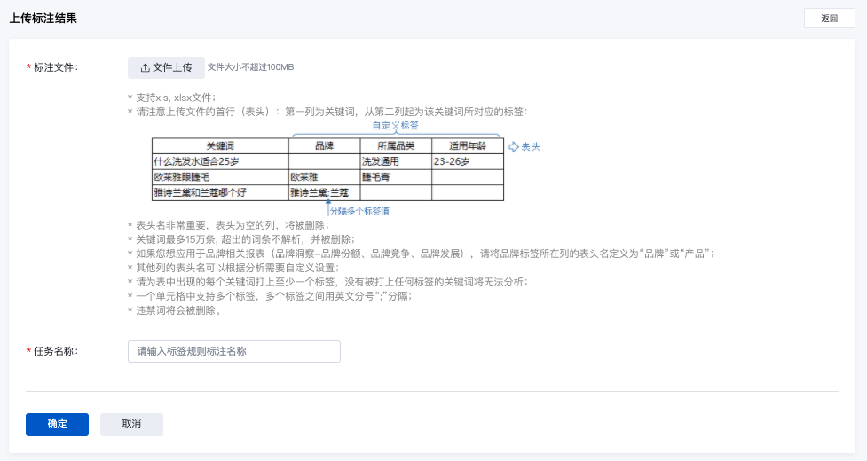 • 上傳標注結果,離線完成對關鍵詞的標簽標注,以Excel形式上傳