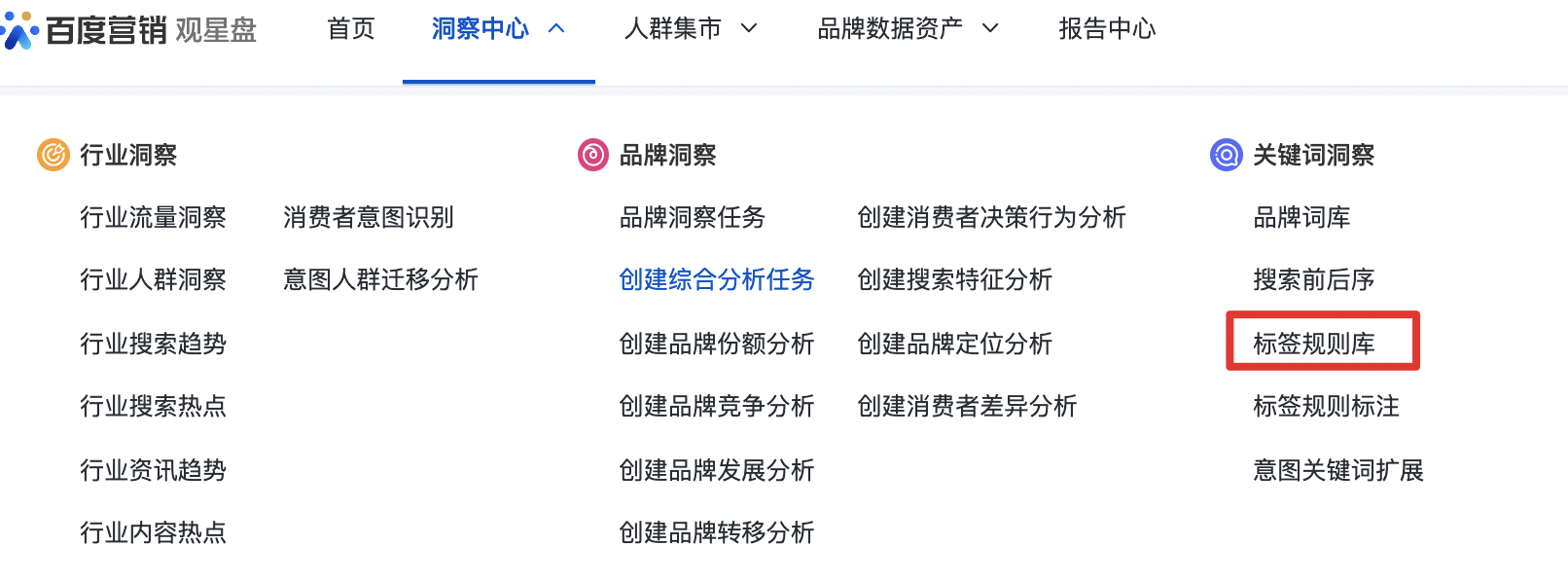 1、 入口:觀星盤-洞察中心-品牌洞察-創建品牌洞察任務 或 新建綜合任務;也可參考藍色框直接創建某個分析任務。