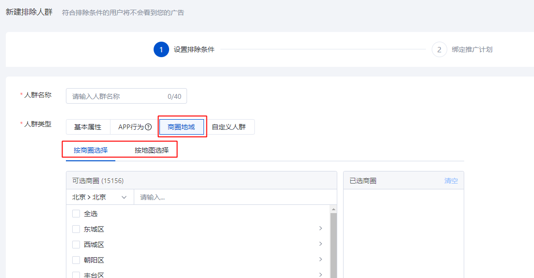 2.1入口:搜索推廣投放平臺-定向-人群-排除人群-商圈地域