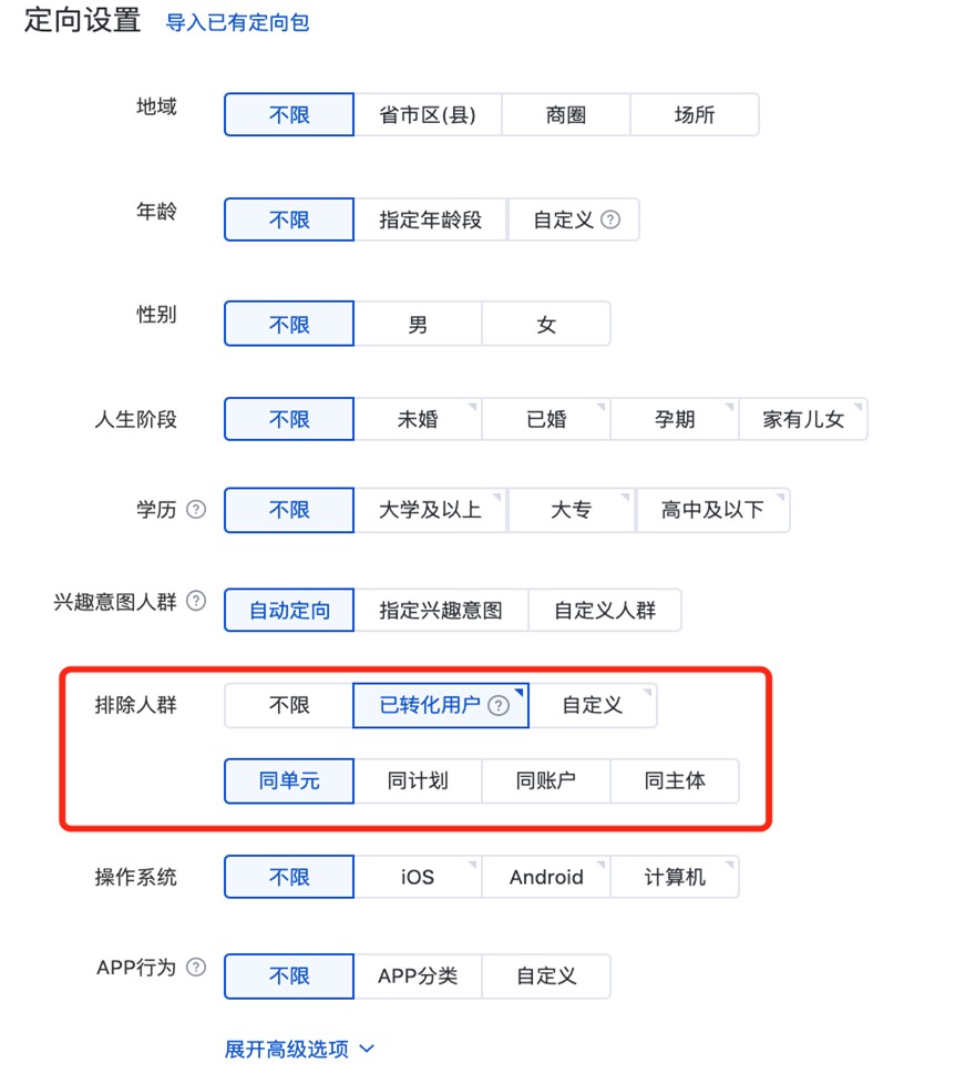 百度信息流推廣-排除人群功能:新增同主體排除已轉(zhuǎn)化用戶