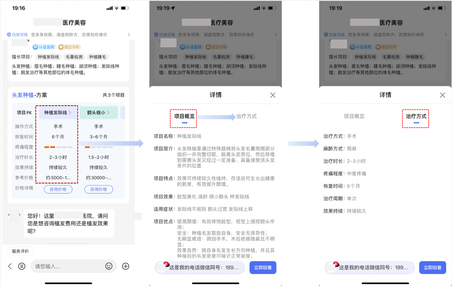 5)在治療方式中依次披露治療方式、麻醉方式、治療時(shí)長(zhǎng)、疼痛程度、恢復(fù)時(shí)間、治療周期、效果持續(xù);
