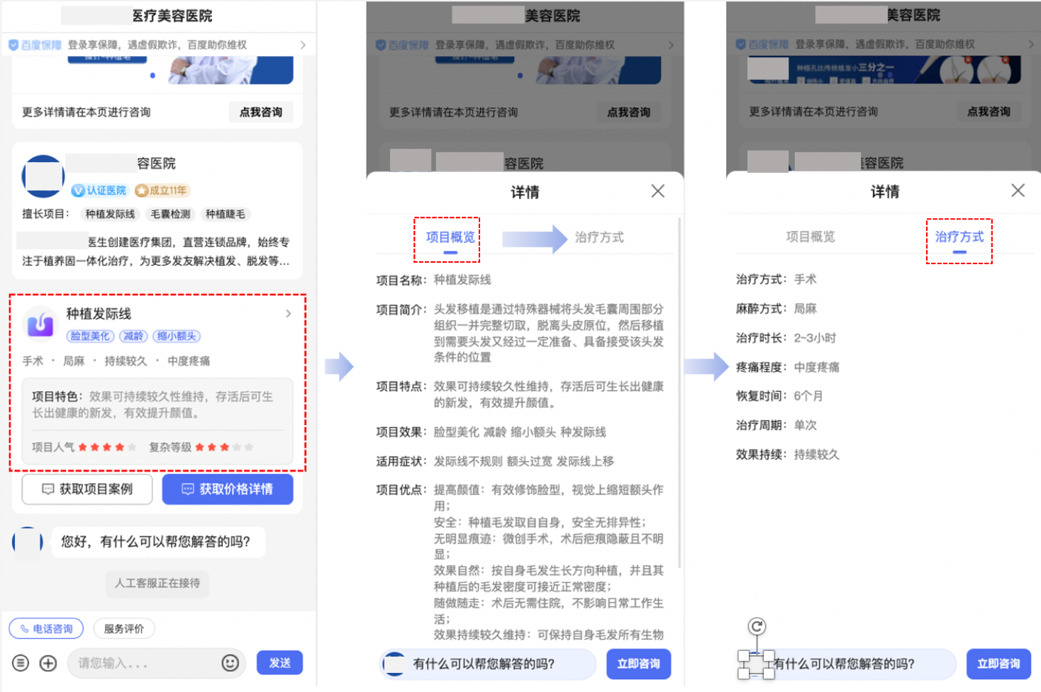 3)醫(yī)美咨詢頁-推薦項(xiàng)目卡與醫(yī)美咨詢頁-推薦方案卡互斥,不同時(shí)展現(xiàn);