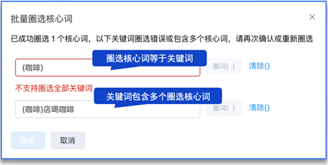 批量圈選核心詞的二次確認(rèn)場景