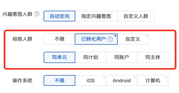百度信息流推廣-排除人群功能:新增同主體排除已轉(zhuǎn)化用戶