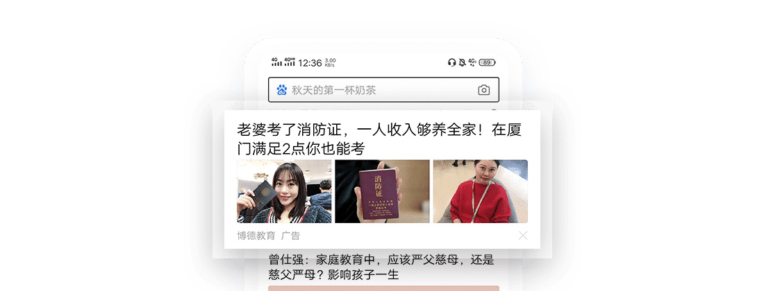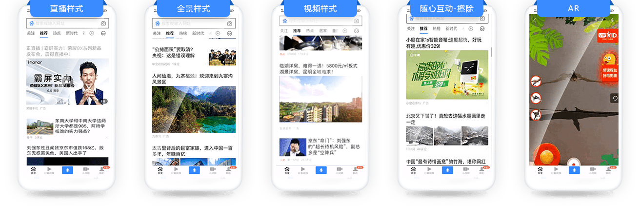展現位置:百度APP\WAP:推薦頻道第一、二廣告位、圖文詳情頁、視頻詳情頁后貼、視頻列表頁、小視頻詳情頁;好看:視頻列表頁;貼吧;列表頁/內容頁。